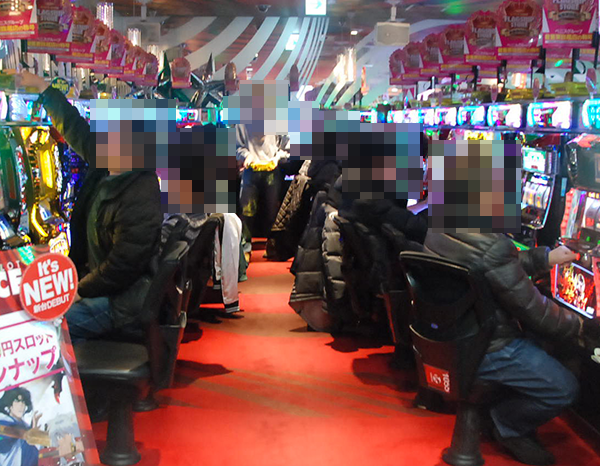 午後の20円パチスロにおいて、もっとも目立っていたのが「バジリスク~甲賀忍法帖~絆」。機種の性能を最大限まで引き出しているといったプレイヤーが多く、満足度の高さもうかがえた。