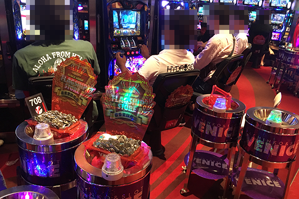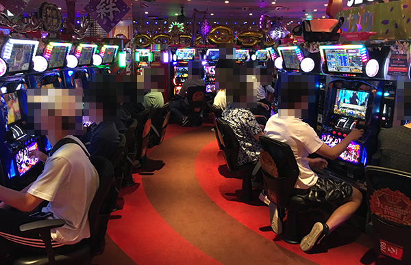 夕方頃の20円パチスロでは、「バジリスク~甲賀忍法帖~絆」や「ミリオンゴッド-神々の凱旋-」、「押忍!番長3」などが盛況。機種の性能を最大限まで引き出しているといったプレイヤーが目立ち、満足度の高さもうかがえた。