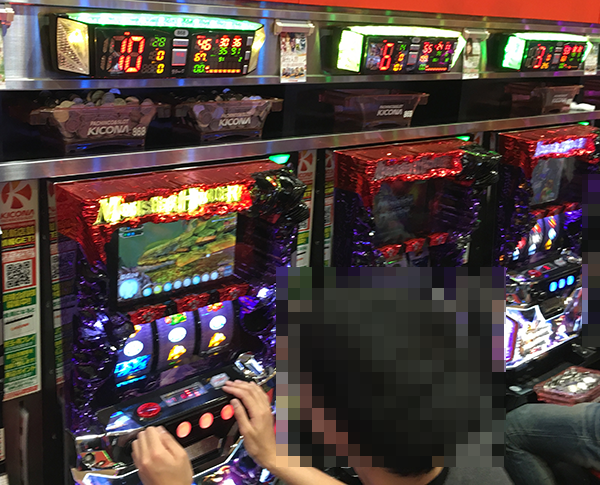 15時頃のパチスロにおいて、目立っていたのが「ミリオンゴッド-神々の凱旋-」と「パチスロ モンスターハンター~狂竜戦線~」。プレイヤーの輝くような笑顔からは、充実した時間を過ごせていることも伝わってきた。