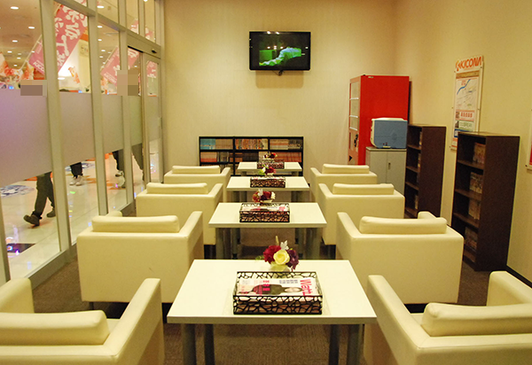 扉で仕切られているレストスペースの居心地のよさも抜群。食事処も併設しているため、食事も気軽にとれる印象を受けた。