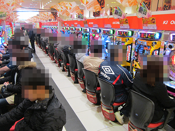 パチスロでは、「バジリスク~甲賀忍法帖~絆」と「パチスロエウレカセブンAO」が満席となっていた。