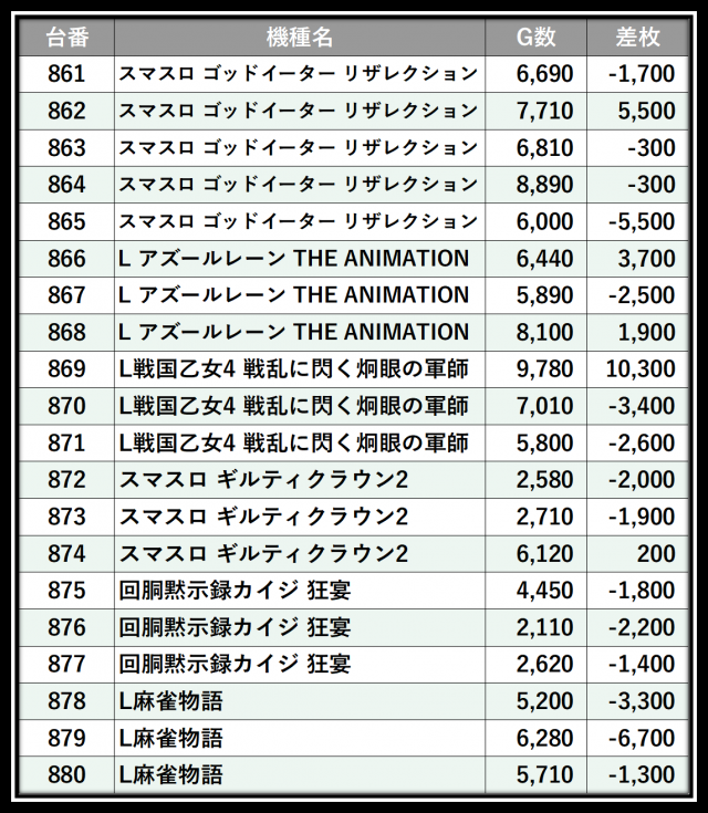 その結果の中から、ぱちタウンが注目すべきポイントを厳選してユーザーにお届け!プレイヤーが楽しんだ一日を下記データにて振り返ってみて欲しい。
