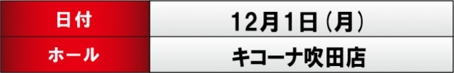 12月1日(月) キコーナ吹田店にて、DMMぱちタウンの「ONE SPARK取材」を実施。