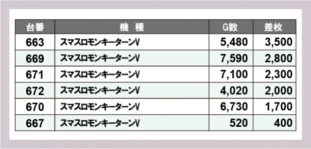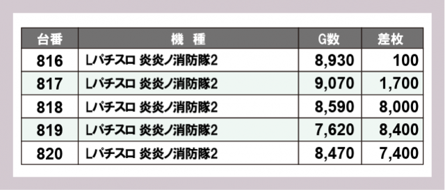 ※台番号順に掲載しています