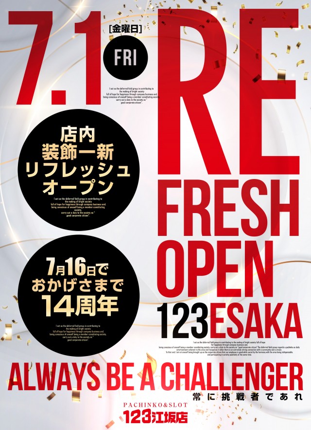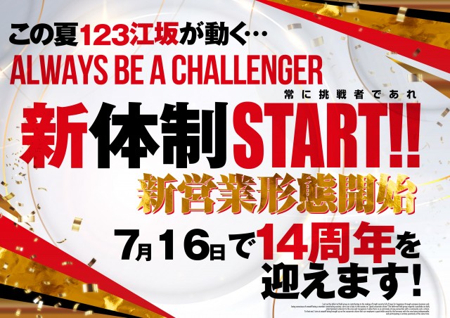 「123江坂店」7/1新体制スタート!リフレッシュオープン!