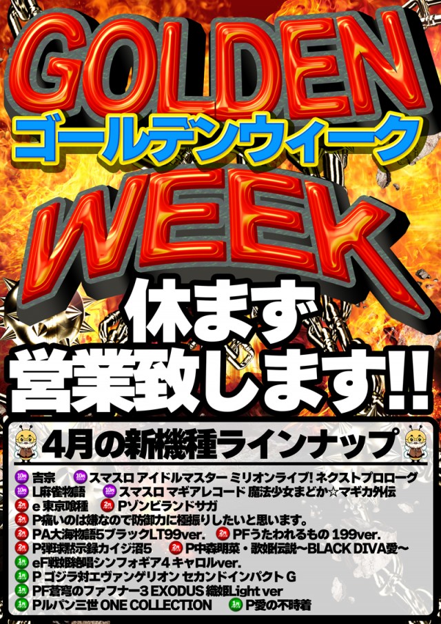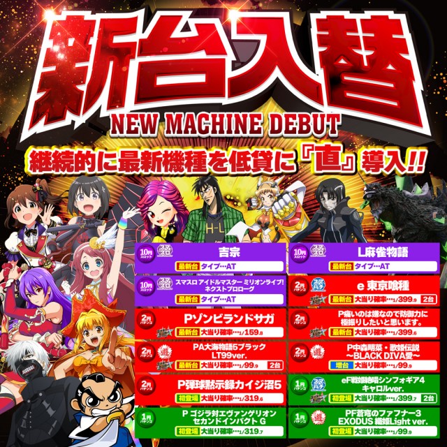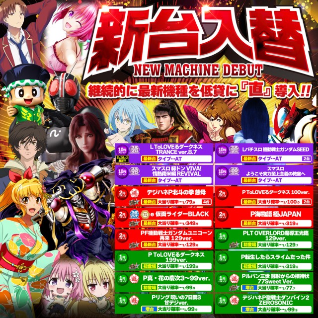 5月8日 『新台入替日!!』×『10円スロット全119台』