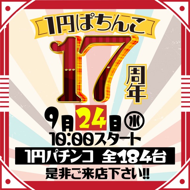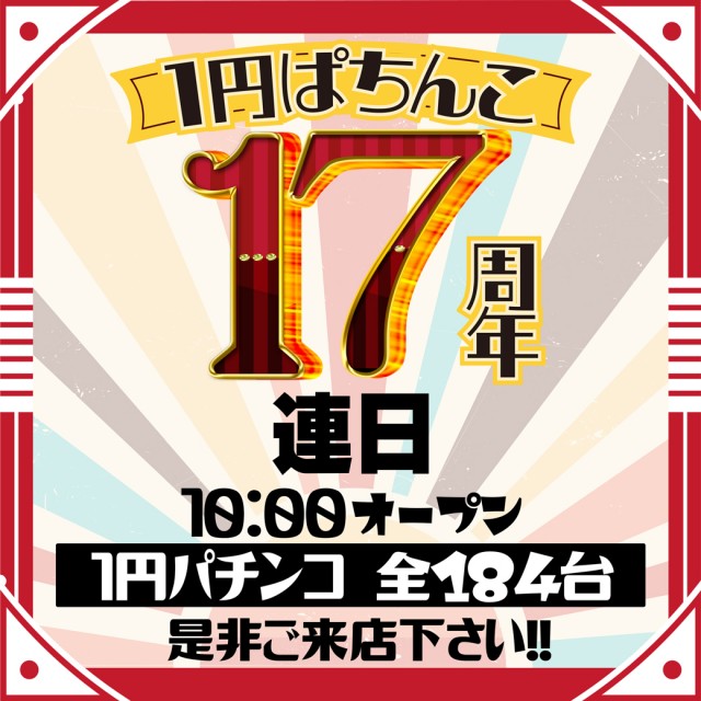 『1円ぱちんこ17周年』10:00open♪