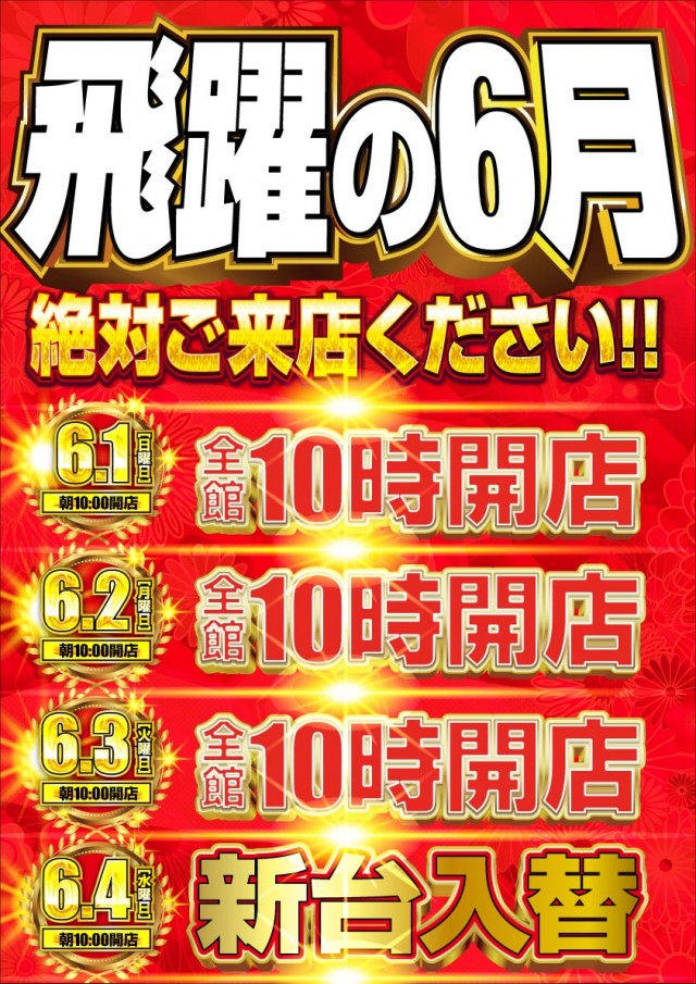 6月1日(日)アミューズ吹田岸辺店10時OPEN連日10時開店