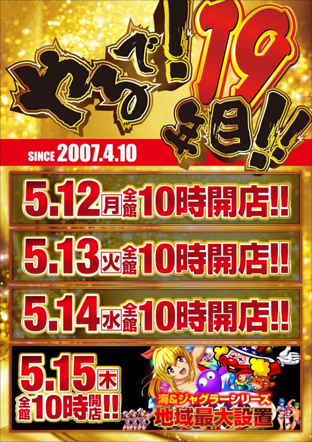 5月11日(日)SINCE 2007.4.10 10時開店‼