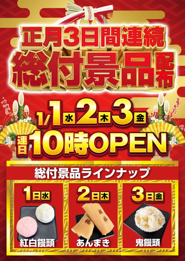 お正月アケ!!アミューズ吹田岸辺店全館10時OPEN!!!