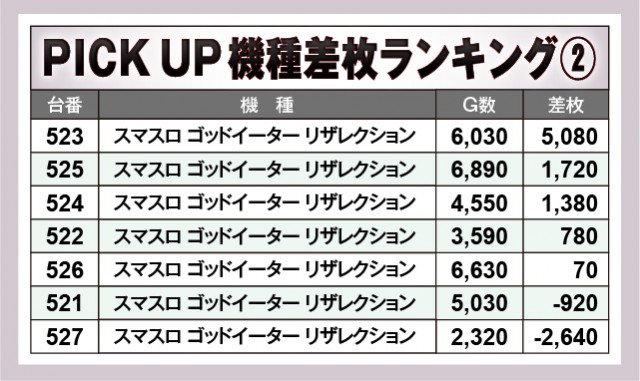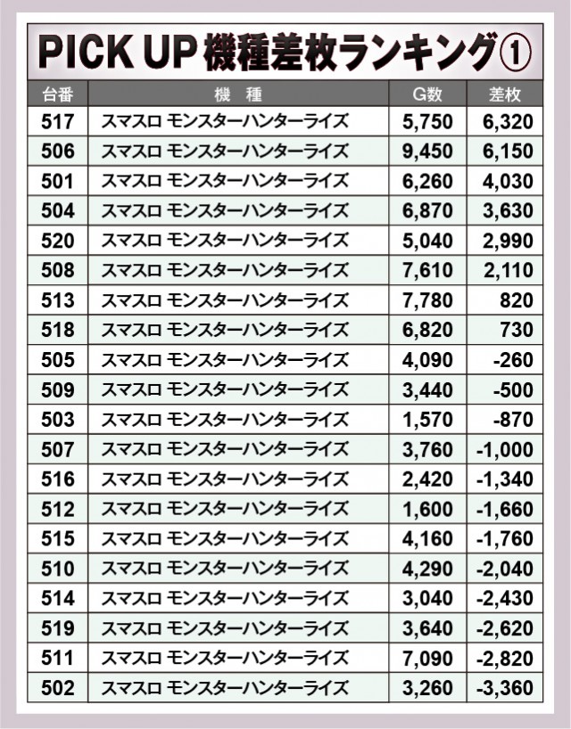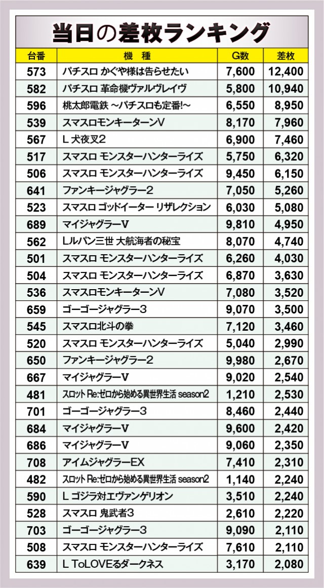 ※差枚数順に掲載しています。
