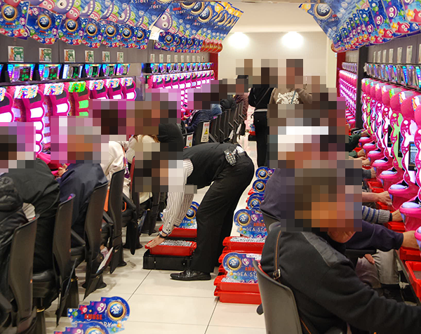 取材日の15時頃のホール内をうかがうと、パチンココーナーは約7割ほどが埋まっていた。