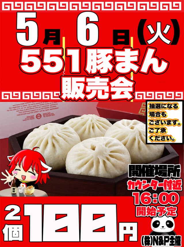 明日 【551豚まん販売会&DMM主催合同抽選会開催】