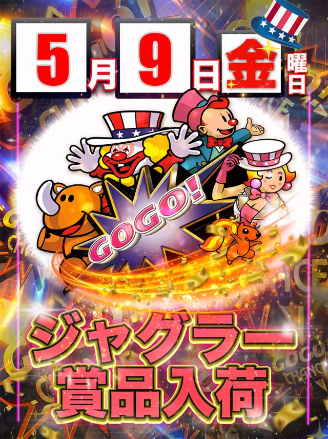 明日 5月9日(金)【新台解禁3日目】ジャグラー賞品入荷