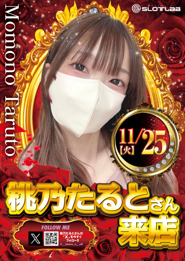 明日11/25(火)スロラボ高槻の25日!桃乃たるとさん来店