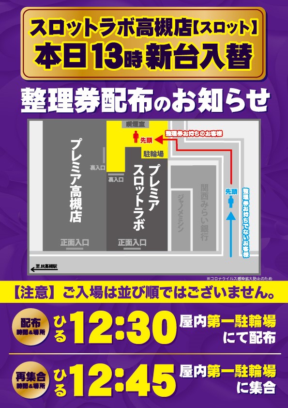 9時40分に整理券を配布致します。新台入替や混雑時等は時間帯変更アリ |