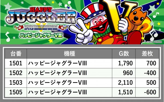 厳選された取材対象機種をはじめ、その他スロット全体から好記録が飛び出した!プレイヤーが楽しんだ1日を下記データにて振り返ってみて欲しい。