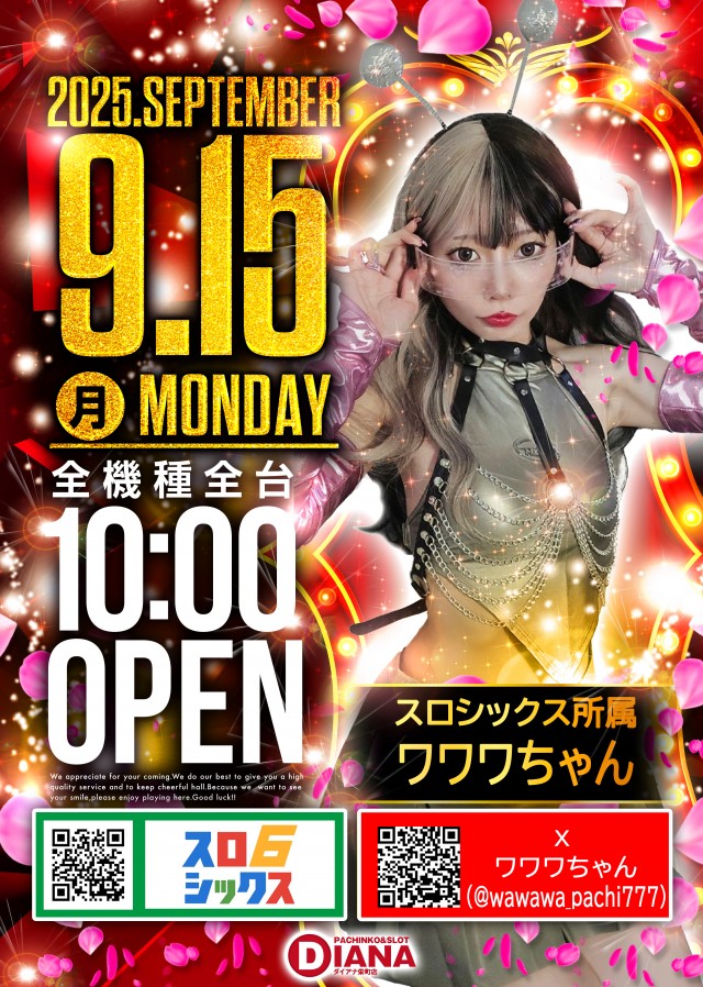 定休日はありませんが、月に1度の【新台入替日】のみ13時OPENとなりますよー! |