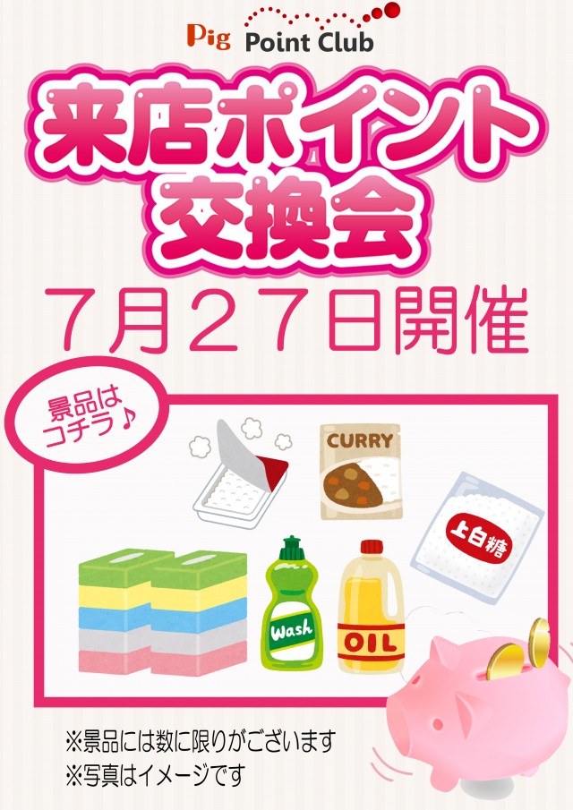 本日 PIGポイント交換会開催 会員カードお忘れなく