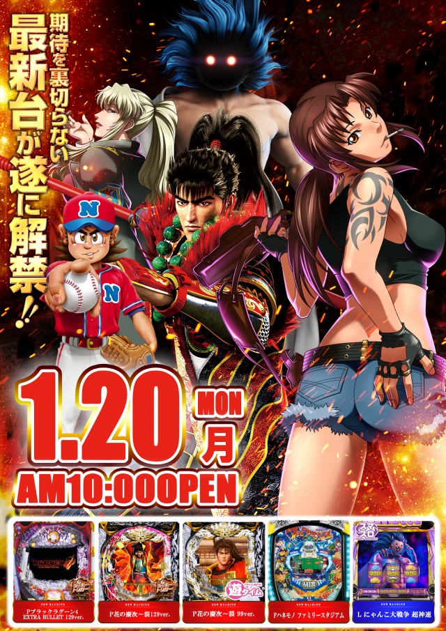 定休日はありませんが、月に1度の【新台入替日】のみ13時OPENとなりますよー! |