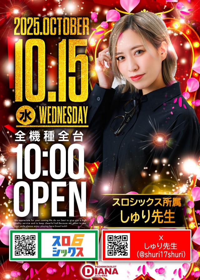 定休日はありませんが、月に1度の【新台入替日】のみ13時OPENとなりますよー! |