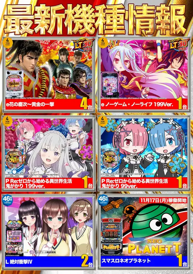 11月4日(火)新台入替13時開店! 役職者ブログ更新済!