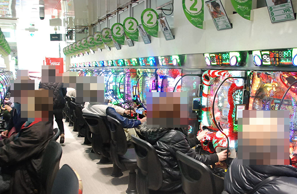 じっくりと楽しめるといった2円パチンコも、にぎやかな状況。