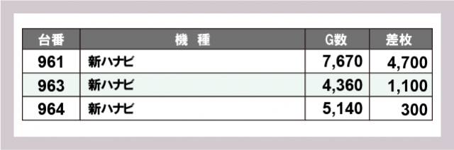 ※台番号順に掲載しています