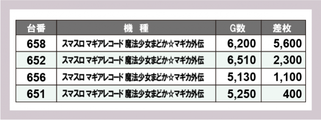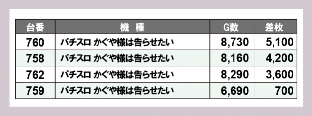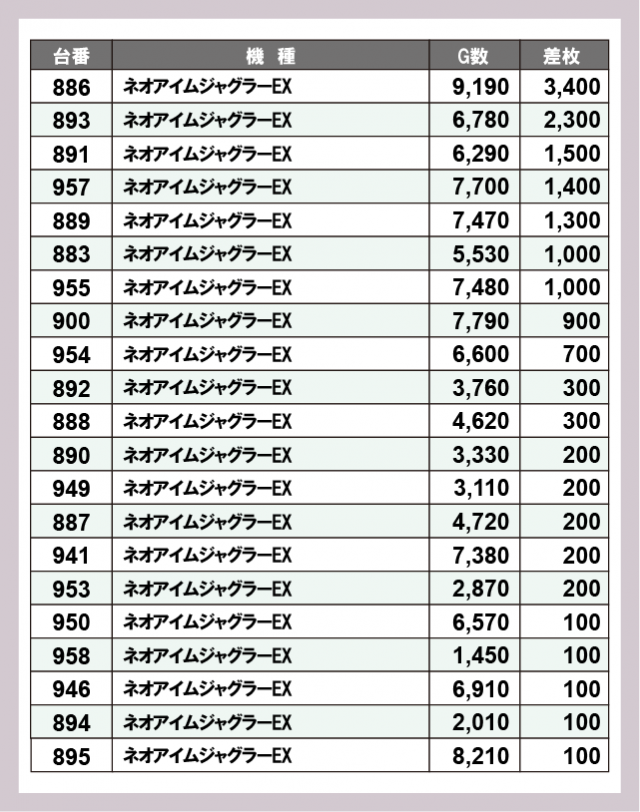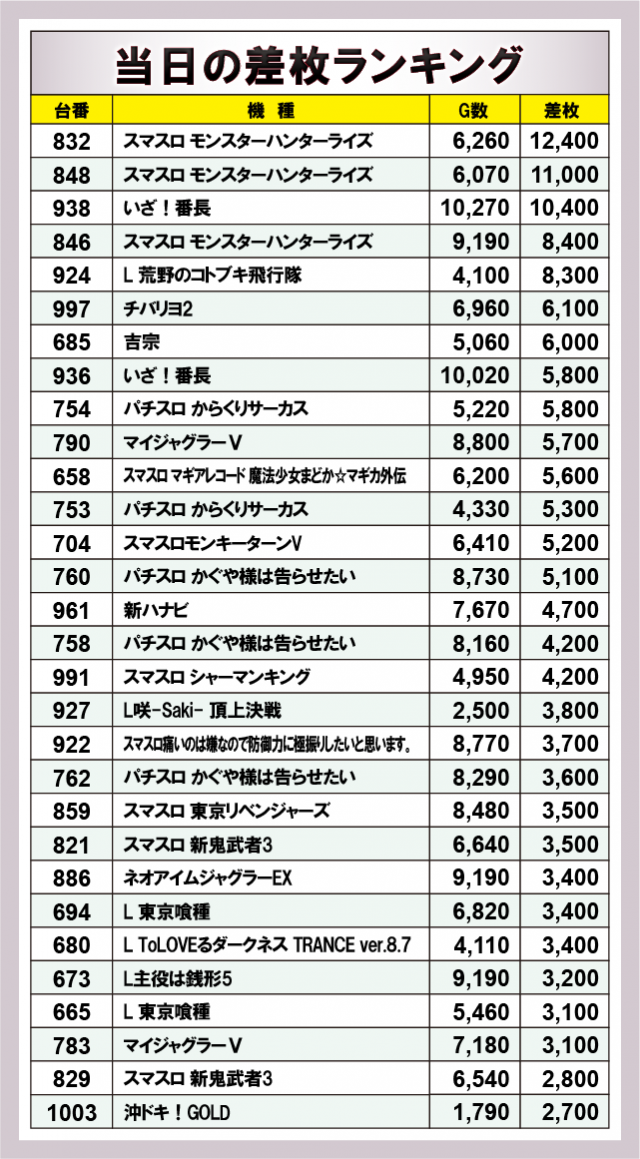 ※差枚数順に掲載しています