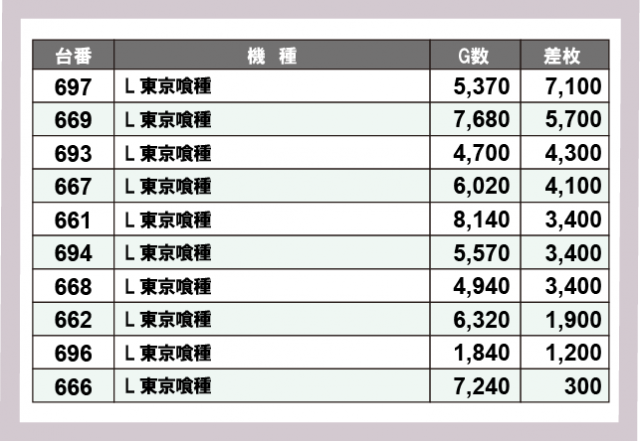 ※差枚数順に掲載しています