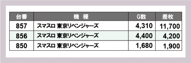 ※台番号順に掲載しています