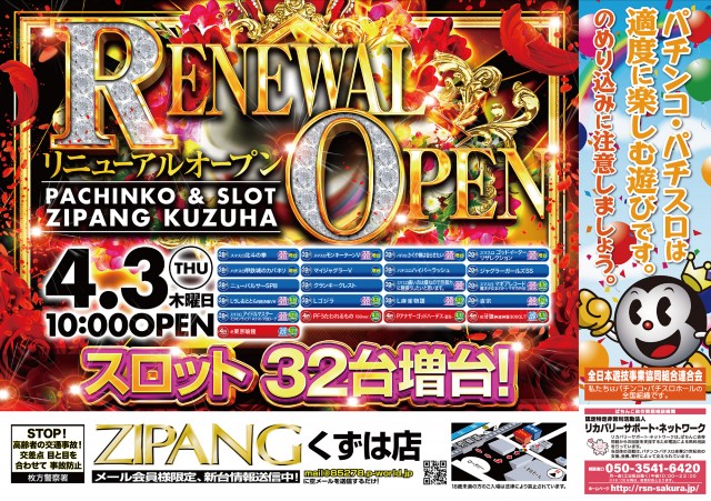 本日3月5日(水)新台入替PM1:00オープン!(予定)