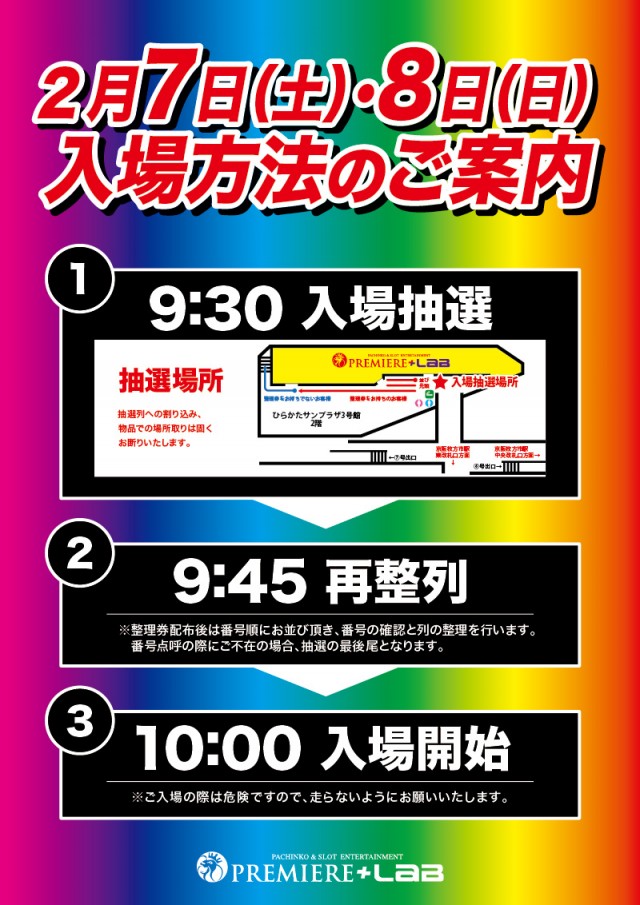 皆様のご来店お待ちしております。※第一週末は混雑が予想されるため入場抽選開始時刻を変更とさせていただきます。注意事項及び開店時のルール