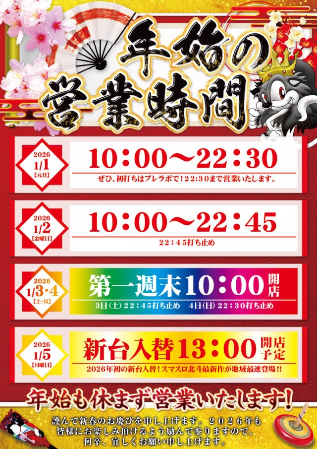 ★☆★☆★☆★☆★☆★☆★☆★令和8年新年初の第一週末1月3日第一土曜日1月4日第一日曜日2026年も第一週末NO.1店は絶対どこにも譲れない!本館(2階)新館(1階)合わせて全848台10時OPEN夜分遅くに失礼いたします。
