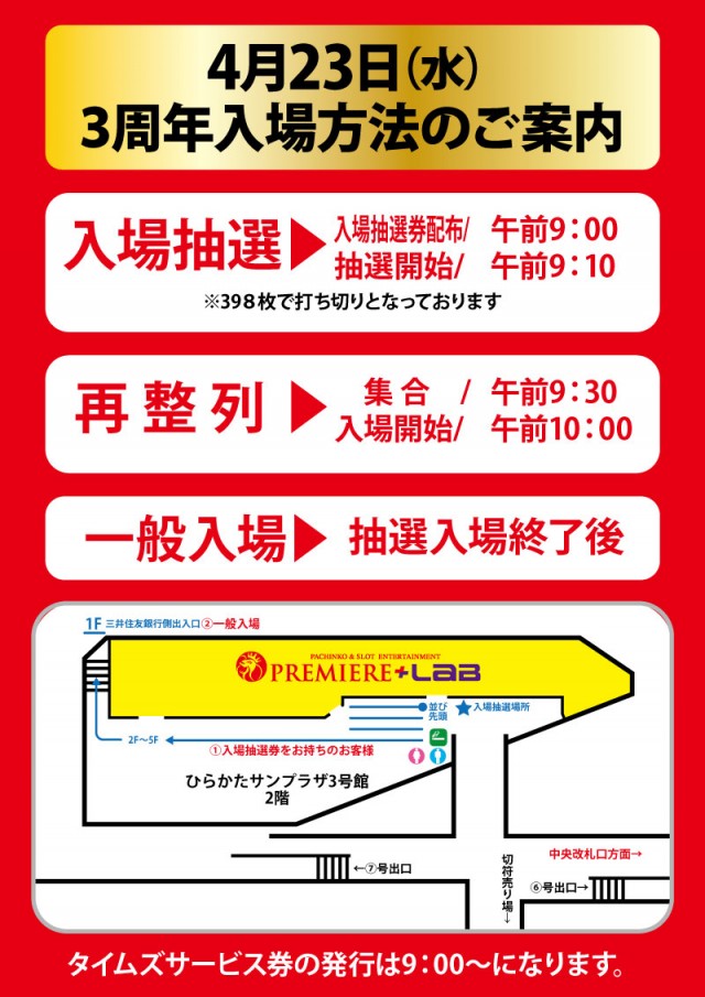 皆様のご来店お待ちしております。※第一週末は混雑が予想されるため入場抽選開始時刻を変更とさせていただきます。注意事項及び開店時のルール