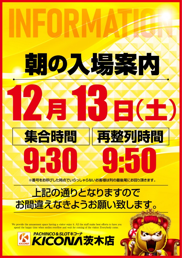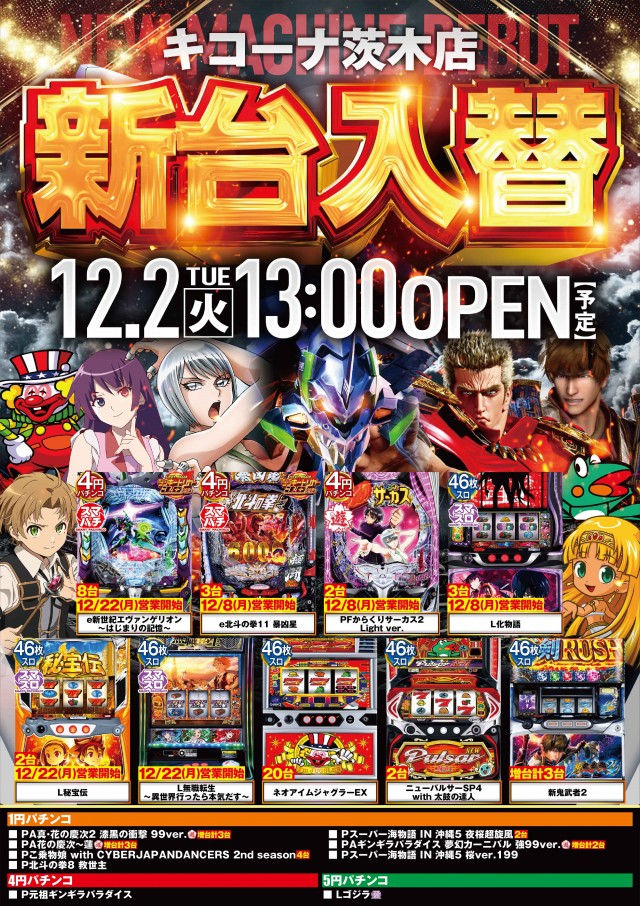 新台打つならキコーナへ!12月12日(金) 10:00開店