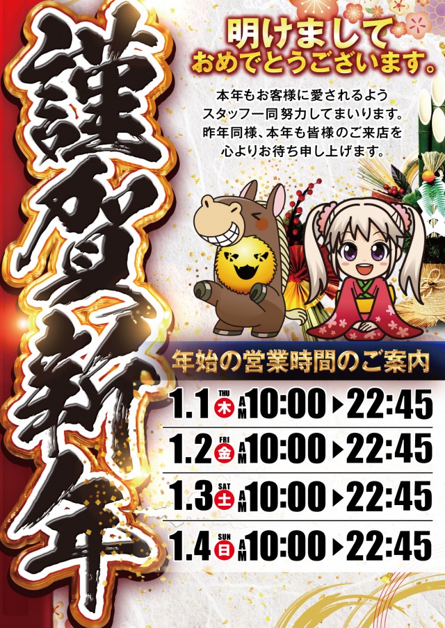 1月1日(木) ★ワンスパーク 10時OPEN★