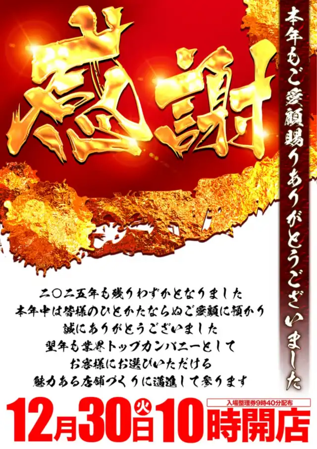 12月27日10時開店!新店長ブログ更新!最新機種導入済