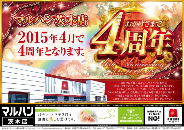 マルハン茨木店、おかげ様で4周年を迎えます!