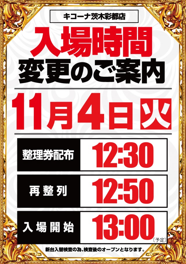 11月4日[火]新台入替 22機種77台導入 13:00開店
