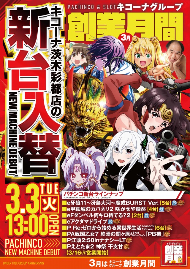 3月3日[火] 【大感謝&新台入替】13:00 OPEN!!