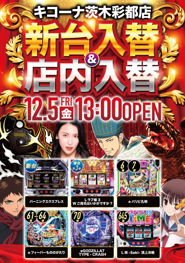 12月5日【新台入替&店内入替】13:00 OPEN!!