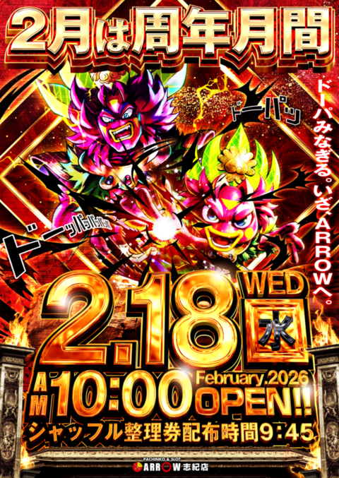 2月18日(水)ドーパ漲る、ハッピードーパ×2月は周年月間