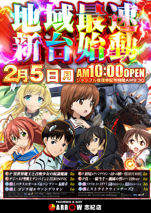 9月4日(月)「最新台地域最速始動」新台打つならアロー志紀店