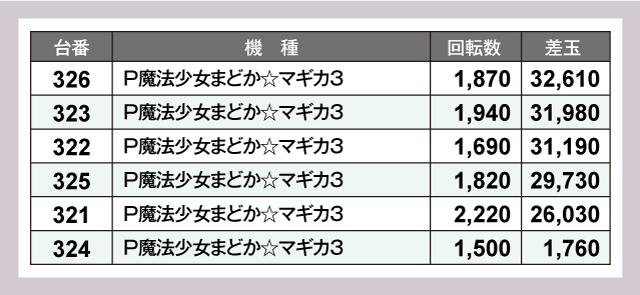 さらにこの日はパチンココーナーも大盛況。『e花の慶次〜傾奇一転』では4万発オーバー、『P魔法少女まどか☆マギカ3』は3万発オーバー3台と素晴らしい結果を残している。