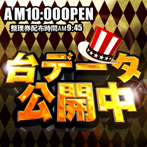 八尾市☆★☆★☆★☆7月23日(金)AM10:00OPEN!!整理券配布AM9:45台データ公開中‼