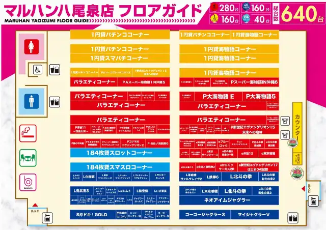 マルハン八尾泉店は平成20年4月29日八尾の地に元気とマルハンらしさを伝えるべく上陸致しました。これからも『パチンコ』という『エンターテイメント』を通じて、『ヨロコビ』というエナジーに満ち活気あふれる、楽しい毎日を目指し精進して参ります。