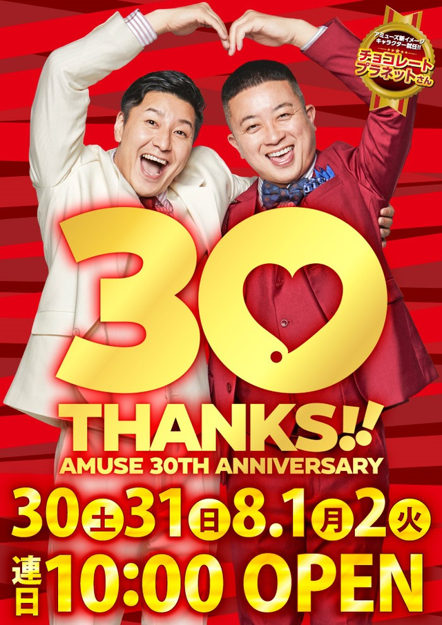 8月1日(月)地 域 最 速新 台 解 禁10時OPEN!!祝アミューズ創業30周年