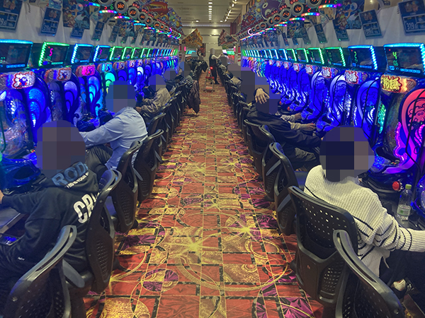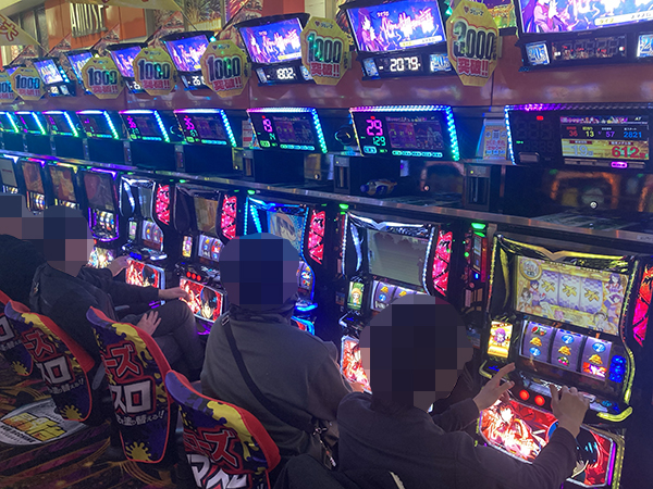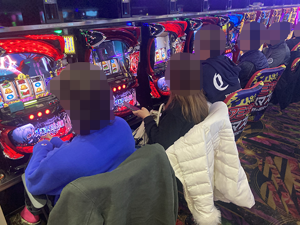 取材時は多くのプレイヤーが来店。パチンコ・パチスロともに、様々な機種が支持を得ていた。
