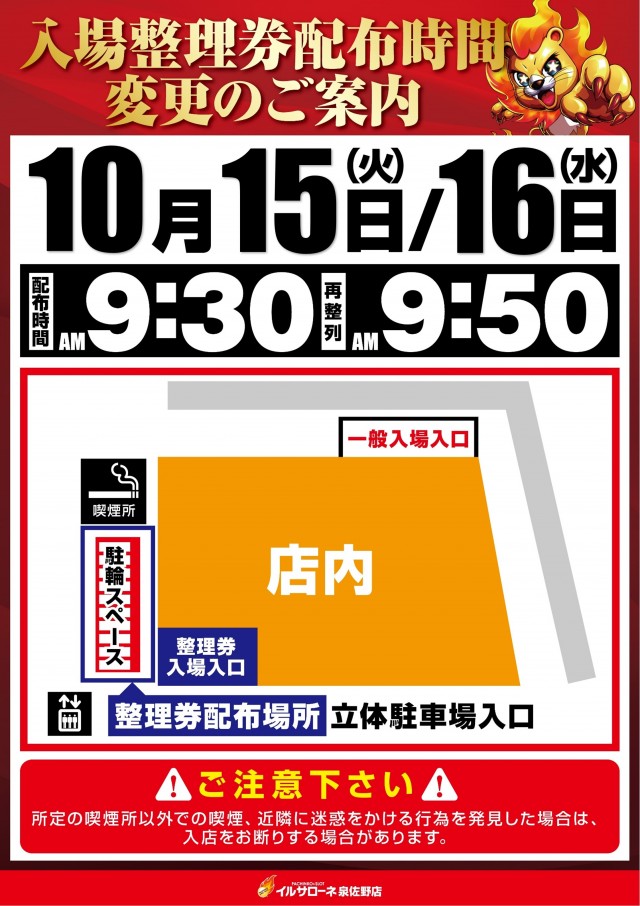 10/15(火)10時開店 イルサ自慢のジャグラー40台設置